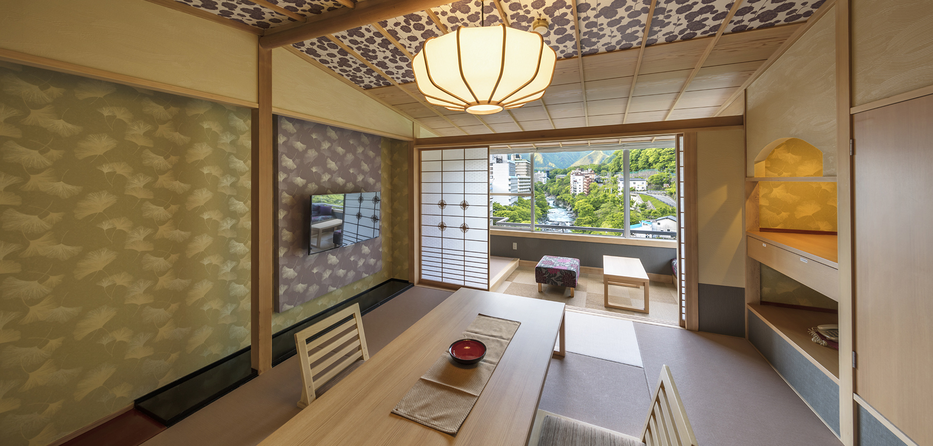 All rooms overlook the dramatic Kinugawa River canyon